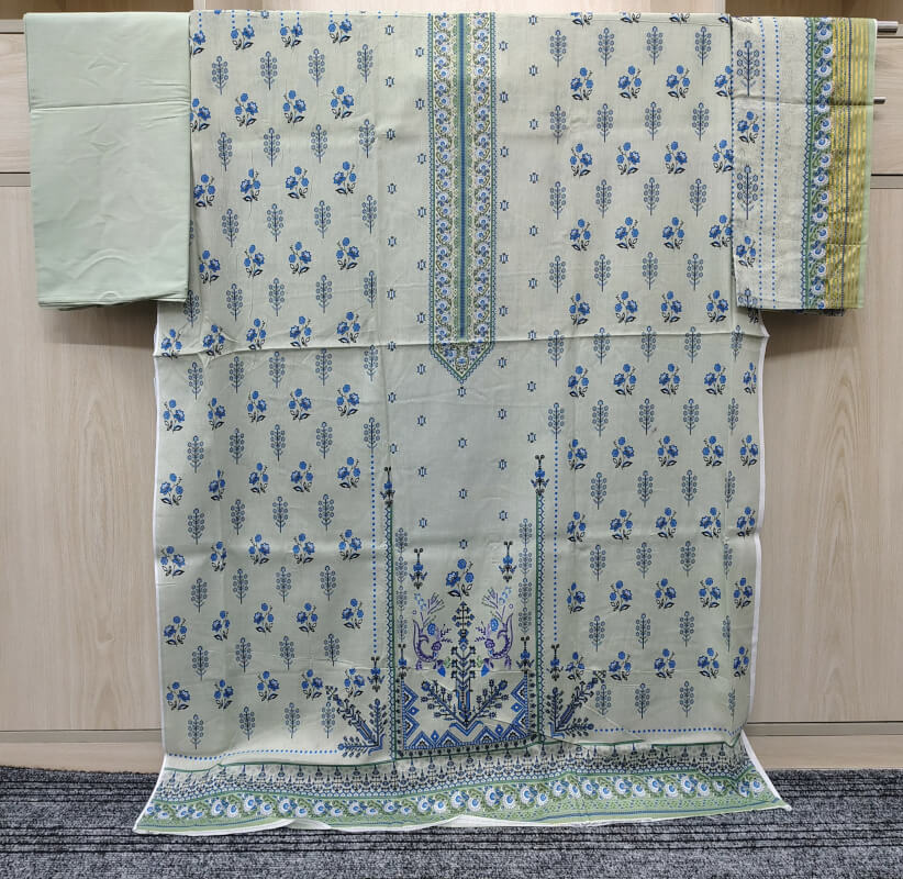 প্রিন্টেড লোন এমব্রয়ডারি থ্রি পিস→